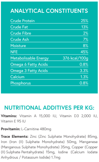 Salmon is naturally rich in omega 3 essential fatty acids which have anti-inflammatory properties and provide support for skin and coat condition and joint health.