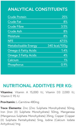 Trout is naturally rich in omega 3 essential fatty acids which may help to support skin and coat condition and may help maintain healthy joints.