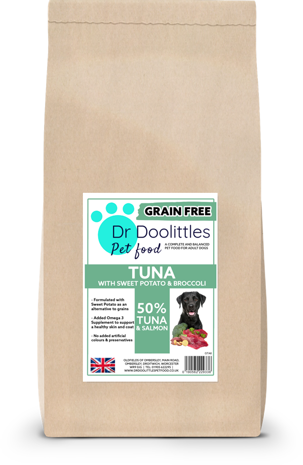 Our grain free recipes contain a higher meat content (around 50%!) than many of our competitors, and at least 26% of that is from freshly prepared meat. We use sweet potato as it has a wide range of nutritional benefits. Sweet potato is naturally gluten free and packed full of vitamins & minerals- like vitamin A, an antioxidant powerhouse for healthy eyesight, skin & coat, and magnesium, which may help your dog cope with stress & promote calmness. Sweet potato contains beta-carotene, which has anti-inflammatory & immune boosting properties. Your dog’s digestive system will be supported by the high fibre content in sweet potato, maintaining healthy digestive transit & the complex carbohydrates will slowly release energy throughout the day.