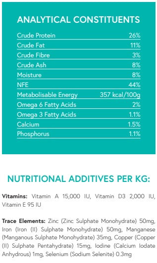 The Grain Free range includes a selection of the finest freshly prepared nutritious and highly digestible animal protein sources. The range has been formulated with sweet potato and potato to be suitable for those with grain intolerance/sensitivity