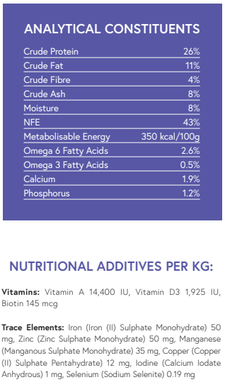 Contains beet pulp as a source of dietary fibre to maintain normal digestive transit