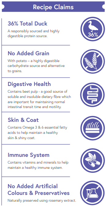 The Super Premium range benefits from a variety of high quality protein sources. The range provides a selection of hypoallergenic recipes formulated without common food allergens for dogs - beef, pork, wheat, wheat gluten, dairy and soya.