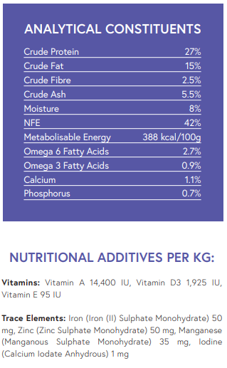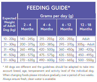 A complete puppy and young dog food which is ideally suitable for large breed puppies and young dogs. The Super Premium range benefits from a variety of high quality protein sources. The range provides a selection of hypoallergenic recipes formulated without common food allergens for dogs - beef, pork, wheat, wheat gluten, dairy and soya.
