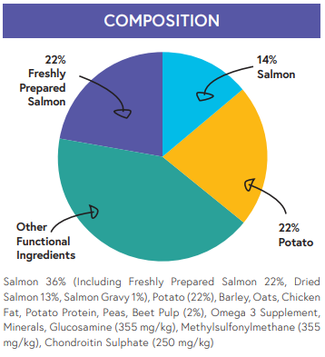 Salmon is naturally rich in omega 3 essential fatty acids which have anti-inflammatory properties, provide support for skin and coat condition and joint health.
