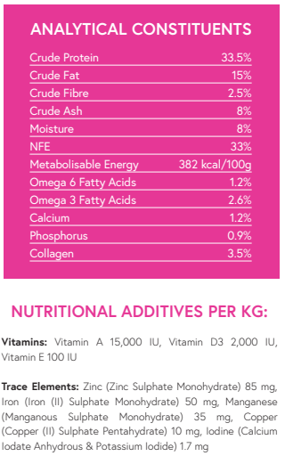 Superfood 65 has a high protein content (65%!) Using our unique Freshtrusion process, this recipe boasts a minimum of 35% freshly prepared meat