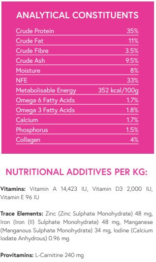 Superfood 65 has a high protein content, using our unique Freshtrusion process, this recipe boasts a minimum of 35% freshly prepared meat