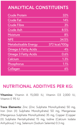 Minimum 35% Freshly Prepared British Free Range Chicken: Responsibly sourced and highly digestible protein source.